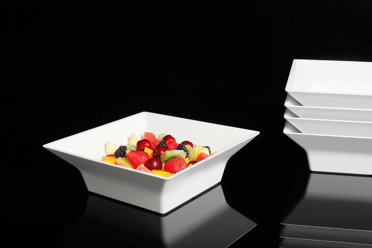 Las piezas están fabricadas en melamina de alta calidad. Un material realmente duradero e innovador que aporta un valor añadido: aspecto y tacto similar al de la porcelana con una alta resistencia a los golpes y caídas.