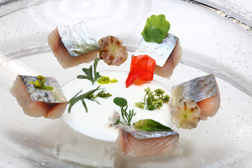 Plato realizado para la chef, con estrella Michelin, Macarena de Castro, restaurante Jardín.