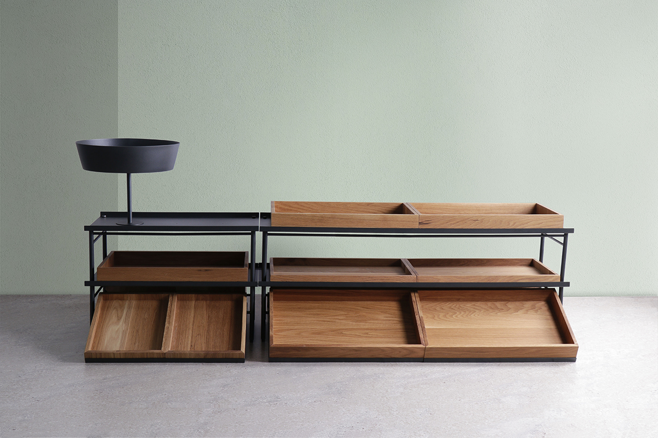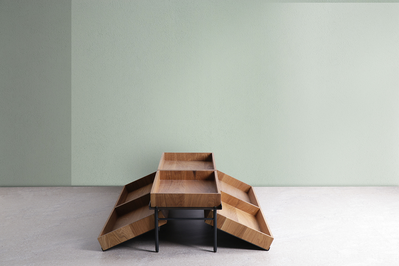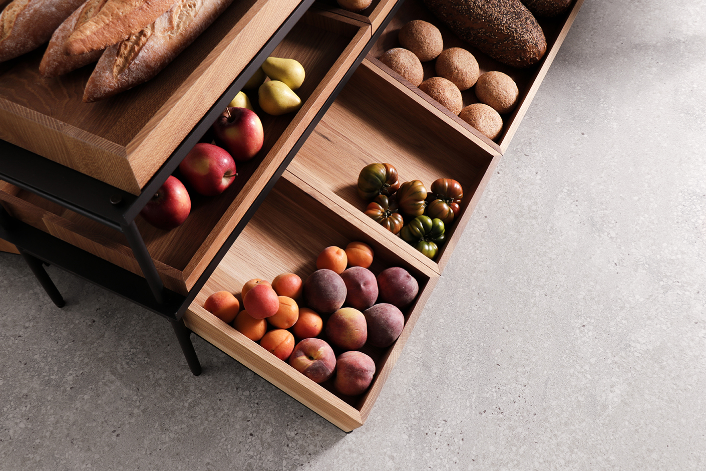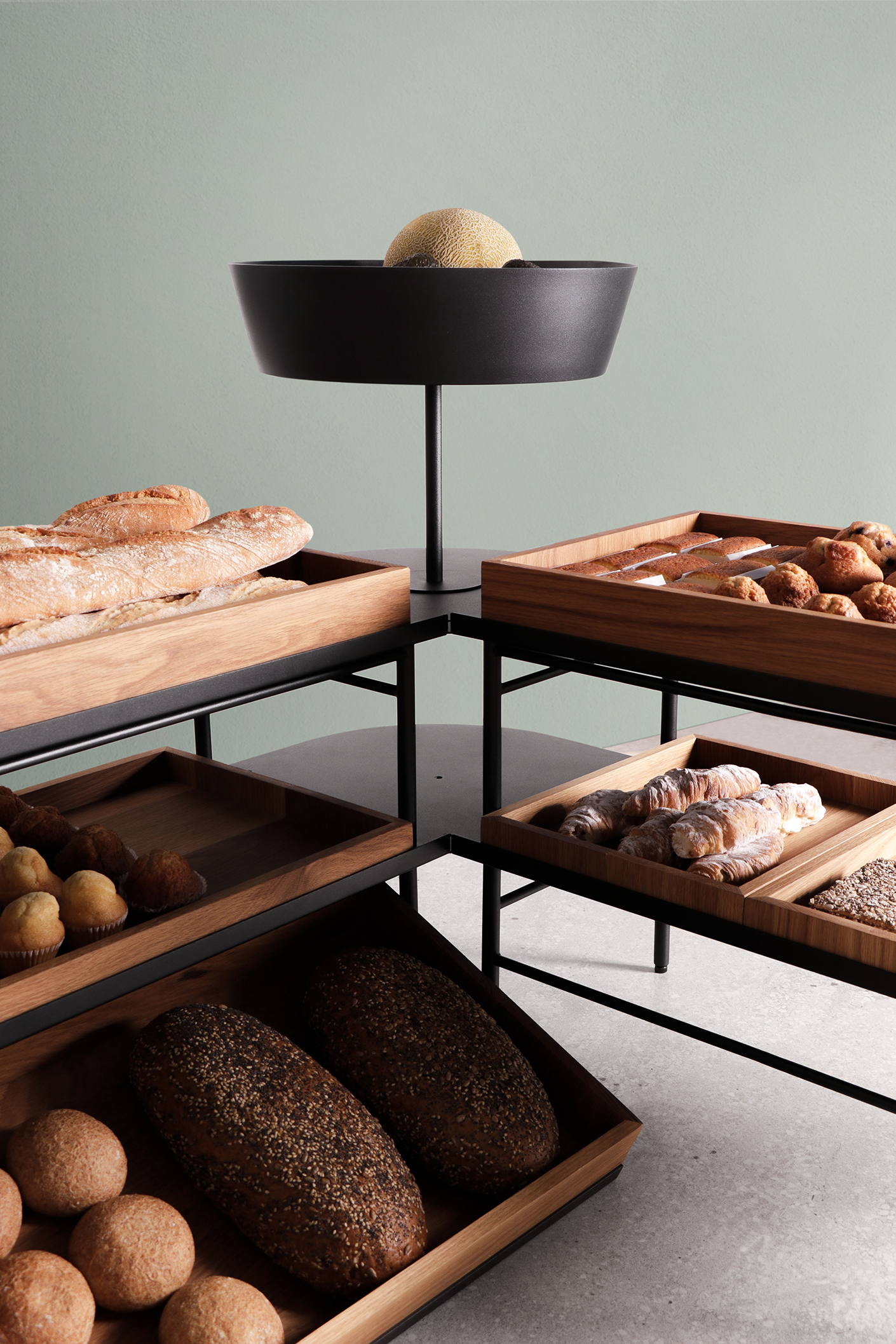 Sistema modular para la exposición de buffet para la marca Nokte.